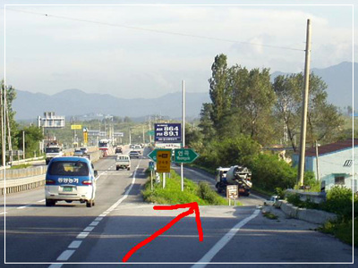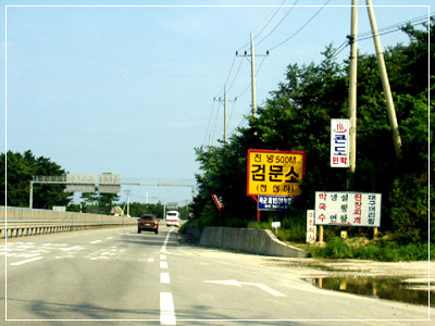 | 전방 500m 검문소 표지를 보면서 직진하세요. |