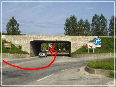 연곡방향으로 천천히 내려 오자마자 좌회전하여 굴다리를 천천히 통과하면서 다시 좌회전