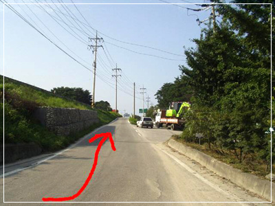 영진GS칼텍스 주유소를 보면서 바로 직전에서 우회전하여 숲속을 잠시 오다 보면